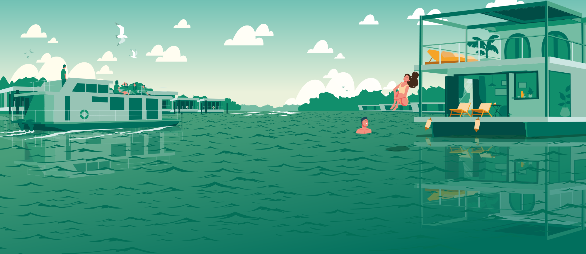 The new insurance policy from Pantaenius not only covers houseboats and floating homes themselves, but also pontoon installations, dolphins, moorings, and of course all the household effects and building components of your floating home. These include, for example, dinghies, yard and pavement fortifications, as well as residential terraces.